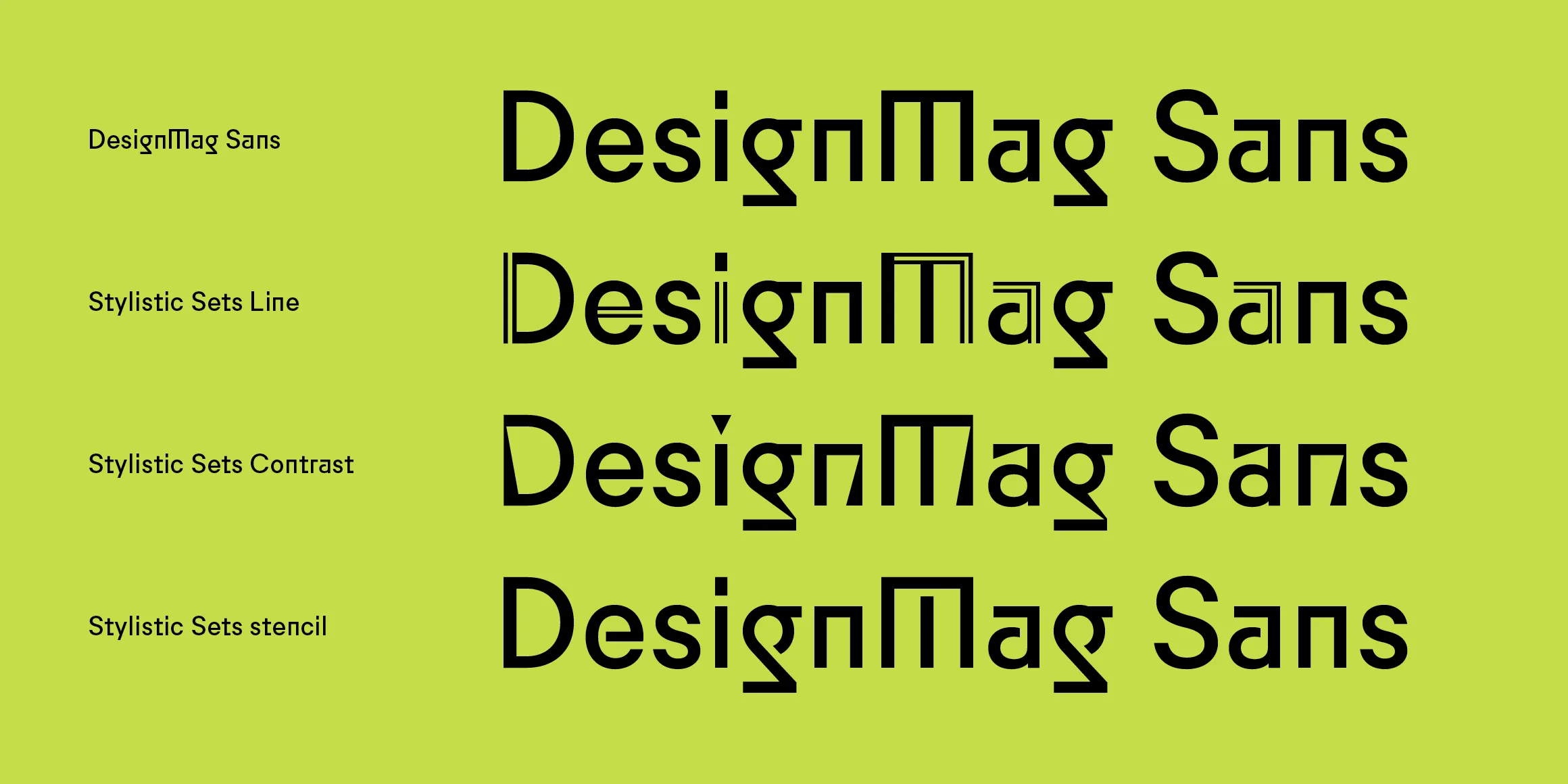 디자인맥 산스는 총 3종의 추가 스타일리스틱 세트가 있어요. 오픈타입 기능을 지원하는 프로그램에서 이용할 수 있는데, 흔히 쓰는 어도비 인디자인, 일러스트레이터, 포토샵, 그리고 스케치와 피그마에서도 적용할 수 있어요.