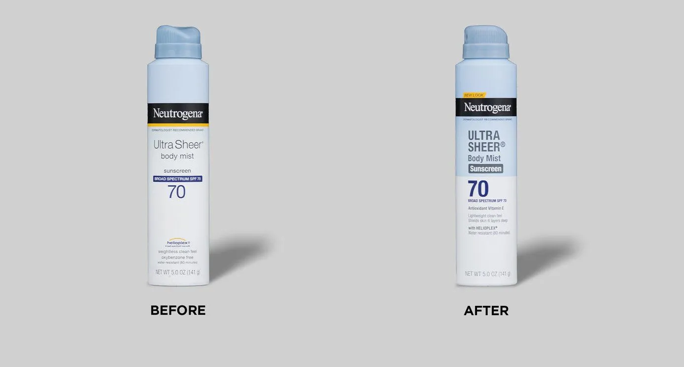 뉴트로지나의 자외선 차단제인 울트라 쉬어 패키지는 소비자 테스트를 반복하며 패키지를 세밀히 다듬은 데이터 기반의 리뉴얼 사례입니다.