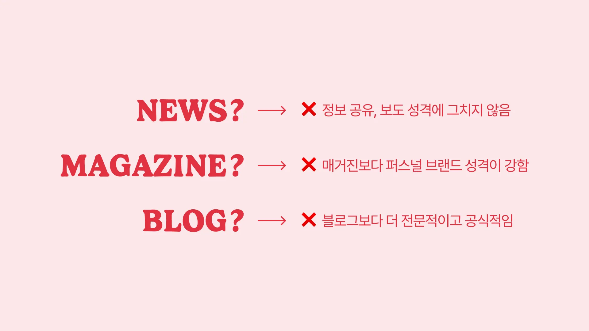 가장 큰 문제는 3번, ‘레이디러너는 디자인 뉴스, 또는 매거진인가?’라는 정체성 문제였어요. 이게 가장 어려웠던 이유는 제가 하려는 활동이 기존의 미디어 유형에 딱 들어맞지 않는다는 점 때문이었습니다. 레이디러너는 단순히 정보를 공유하는 뉴스도 아니고, 그렇다고 완전히 매거진처럼 가기에는 퍼스널 브랜드의 성격이 강했어요.