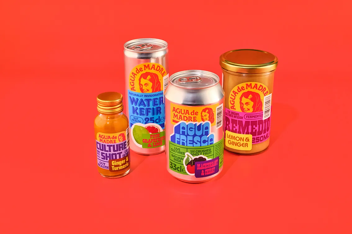 이번에는 디자이너 Chris Chapman이 작업한 탄산음료 Agua de Madre의 브랜딩 디자인입니다. 이 경우는 스티커 자체가 디자인의 핵심입니다. 여러 스티커를 겹친 모습으로 하나의 라벨을 구성했죠. 노스탤지어를 의도하기도 했고, 다양한 폰트를 활용해서 활력을 불어넣으려 했다고 해요. 많은 요소를 담는 맥시멀리즘 디자인에서 스티커 콜라주가 제 역할을 톡톡히 했습니다.