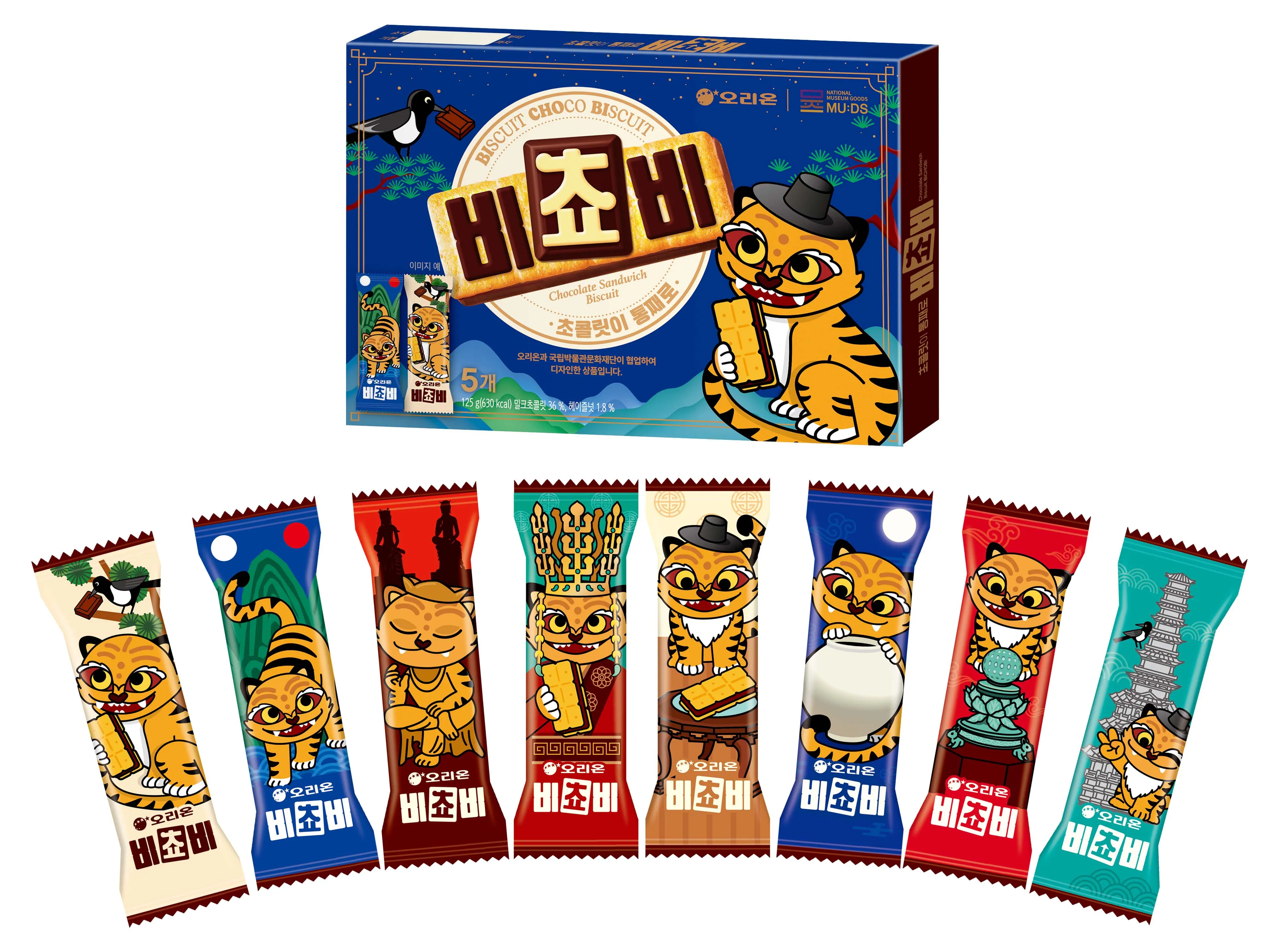 케이팝 데몬 헌터스의 열풍을 타고 한국 전통 관련 상품이 인기를 끌고 있다는 건 다들 알고 계시겠죠? 이번에는 뮷즈로 유명한 국립박물관문화재단과 공식 협업한 상품이 나왔어요. 바로 오리온의 초콜릿 샌드위치 비스킷, 비쵸비 국립중앙박물관 에디션입니다.