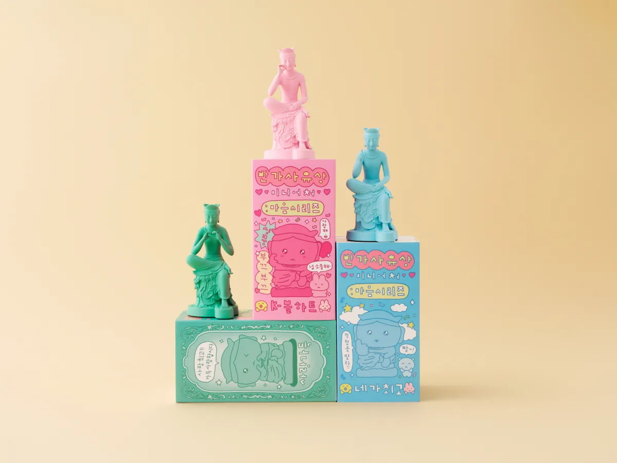 출시만 했다 하면 품절 대란을 일으키는 국립중앙박물관 뮷즈에서 개관 20주년 기념 한정 굿즈를 출시했어요. 각각 엄지척, 양손하트, K볼하트 포즈를 취하고 있는 반가사유상 미니어처 3종인데 일부 상품은 이미 품절되었을 만큼 큰 인기를 보이고 있습니다.