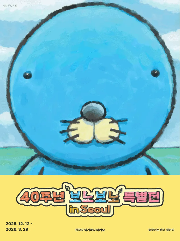 보노보노의 전 세계 최초 원화전이 한국에서 열립니다. 300여 점의 원화, 그리고 40주년을 맞이해 그려진 대형 신작들을 함께 선보여요. 서울 곳곳의 랜드마크와 함께 그려진 40여 명의 보노보노 친구들을 만날 수 있는 전시라고 합니다.